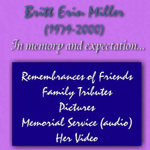 Remembrances of Britt--by her friendsTributes to and Reflections on Britt by FamilyPictures of BrittMemorial Service Audio filesA video of Miss Britt...
